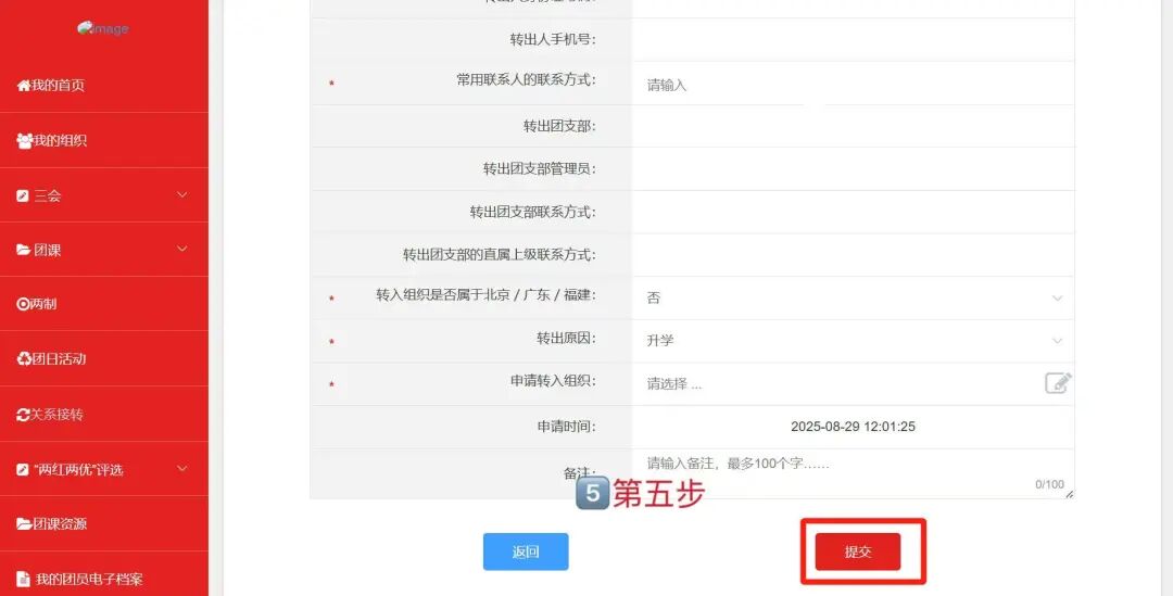 (3)申请转入组织的原因为“升学”