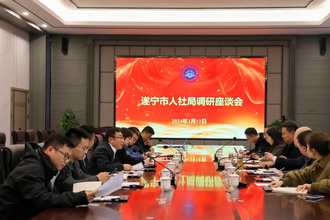 2024年3月12日,遂宁市人社局蒋晟、程康、喻瑶、李文军、苏洋、陈雯一行与遂宁高新区管委会殷雪梅、袁国龙、王洪斌、曾强一行莅临我校调研指导工作。我校校长刘志东、校长助理李啸天、人事处处长周德宇、招生宣传处处长李少为出席调研座谈会。会议在明德楼第一会议室召开,由我校校长刘志东主持。