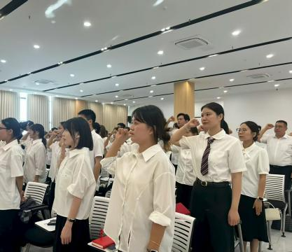 8月28日上午,培训在庄严的国歌声中正式启动。仪式中,新聘教职工代表唐钰老师上台发言,表达了投身教育事业的初心与决心。随后,全体新教师跟随领誓人隆春晓老师庄严宣誓,铿锵誓言回荡会场,彰显了新教师们崇高的职业使命感。